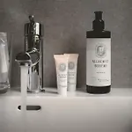U kunt er van uitzicht op de tuin genieten. Geniet van het comfort van een badkamer in NOOQA Duisburg - 'Exklusives Design Apartment' - Parkplatz, Balkon, Nespresso - 6 Personen - 85qm, dat met een haardroger en handdoeken is uitgerust. Er is ook een apart toilet en een douche.
